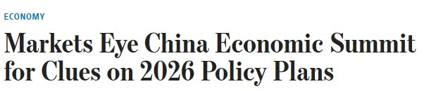《华尔街日报》日前发表了题为《市场聚焦中国中央经济会议 探寻2026年政策规划线索》的报道。文章称,中国中央经济工作会议将敲定这一全球第二大经济体2026年的发展重点易信盈,市场密切关注中国发展,期待从中探寻中国新一年政策规划的方向。